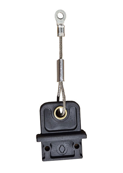 The debris plug for Datakey SlimLine token receptacles is used to keep dust, dirt and debris from getting into the pocket of a receptacle. The debris plug is made of thermoplastic vulcanizate (TPV) that allows it to conform to the pocket of the SlimLine receptacles. The snug fit of the plug along with the retention features help to keep the plug securely in place. The debris plug with tether includes a coated, stainless steel cable looped through the debris plug's eyelet and is terminated with a ring terminal allowing it to be secured near the receptacle using a #4 screw. This keeps the debris plug secure and in close proximity when it is not inserted into the receptacle opening.